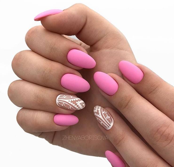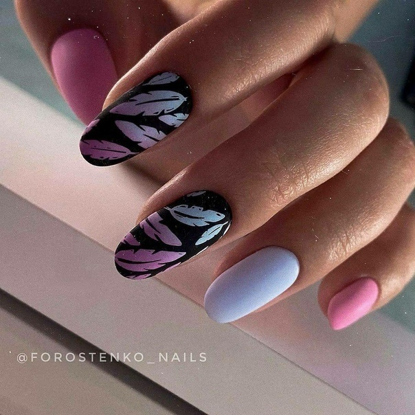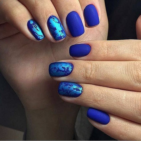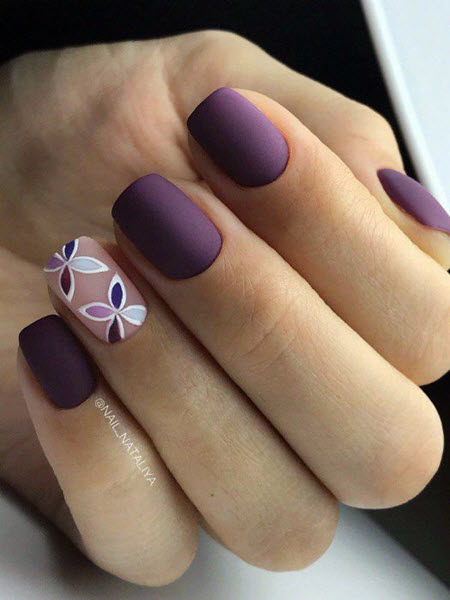 Матовые текстуры наиболее актуальны для осени-зимы. Такое покрытие делает ногти более изысканными и сдержанными. Матовый дизайн – отличный вариант для повседневного и делового нейл-арта. Чтобы маникюр не казался скучным, дополните его рисунками стемпинг. Роскошные узоры в сочетании с бархатистой текстурой создадут великолепный дизайн для любого случая.
