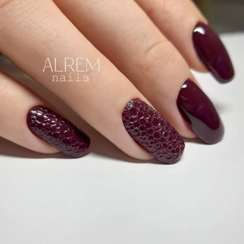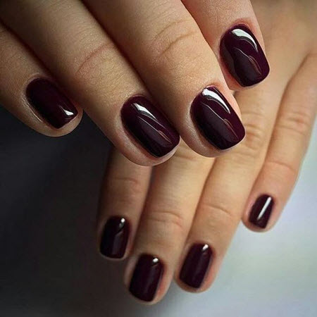 Благородно и очень стильно смотрятся ногти винных оттенков, ставшие замечательным вариантом для маникюра осени. Прекрасно выглядит на ногтях матово-бархатное покрытие винных оттенков, по желанию дополненное фольгой или стразами, а еще можно придумать сказочный осенний градиент.