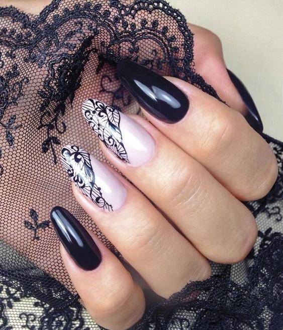Длинные ногти всегда позволяют отыграться сполна на их будущем дизайне, ведь здесь можно делать все, что душе угодно. Оптимальное по размеру поле прекрасно отразит любые богатства сложного узора или рисунка, а также кружева, поэтому на длинные ногти чаще всего и делается упор при выставочных мероприятиях профессионального нейл-дизайна.