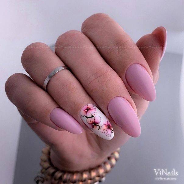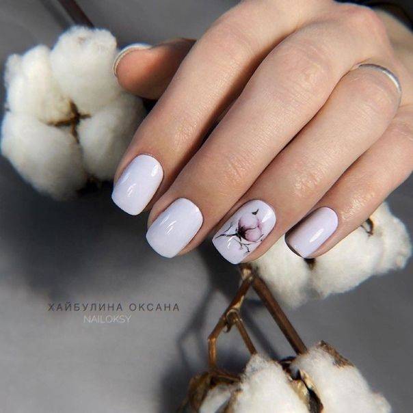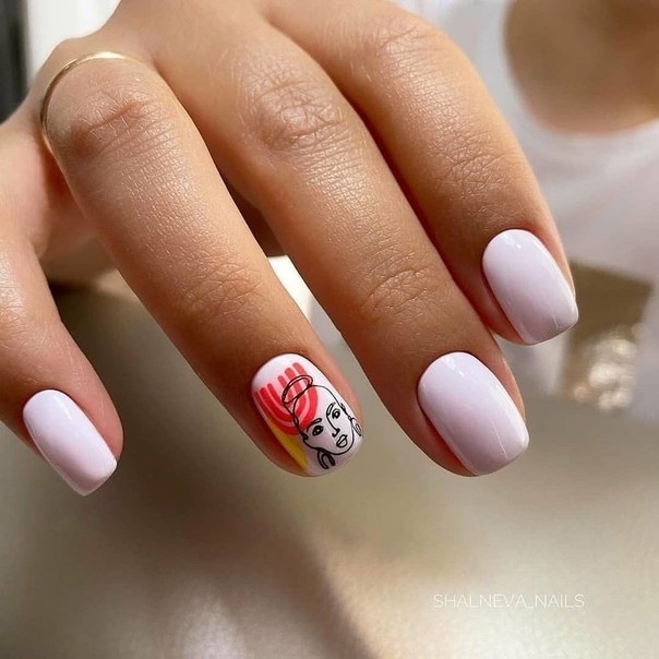 Рисунок обычно располагают на одном ноготке, чтобы создать повышенный акцент и выделить его среди других. Этот прием позволяет оживить технику минимализм, украсить простое покрытие неброским лаком и придать общему дизайну особенной изюминки.