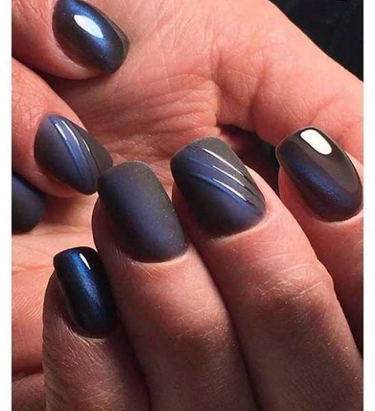 Привлекательный перелив дизайна «кошачий глаз» станет непревзойденным украшением маникюра сезона. Эта техника определенно выглядит наиболее эффектно на темной основе. В качестве дополнения можно сделать акцент штриховым градиентом на нескольких ноготках. Это придаст металлическому нейл-арту оригинальности и элегантности. Также можно использовать дополнение в виде тематического узора или страз.