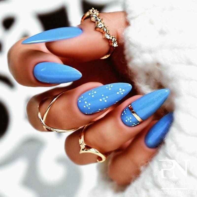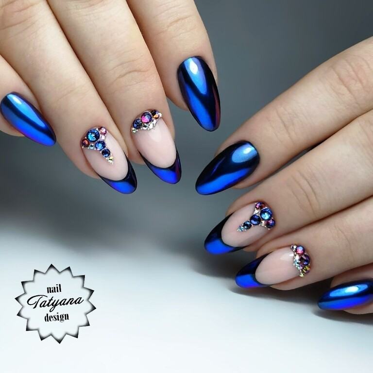 По данным института Pantone в 2021 году в моде множество оттенков синего, от более светлых до более темных насыщенных, в зависимости от того, какой оттенок вы выберете для своего маникюра, он обязательно будет в тренде этой осенью.