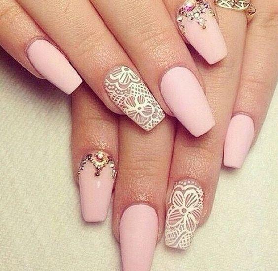 К сложному узору запросто можно отнести кружево. По выполнению дизайн очень трудоемок и требует от мастера филигранной точности в выведении правильных и четких вензелей. Некоторые виды достигаются путем разных техник, за которые могут отвечать трафареты или наклейки. Но больше всего в кружеве ценится именно ручной подход.