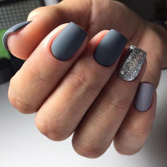 Поклонникам серого маникюра можно с уверенностью сказать, что он станет прекрасным дополнением вашего образа этой осенью, особенно в матовом исполнении.