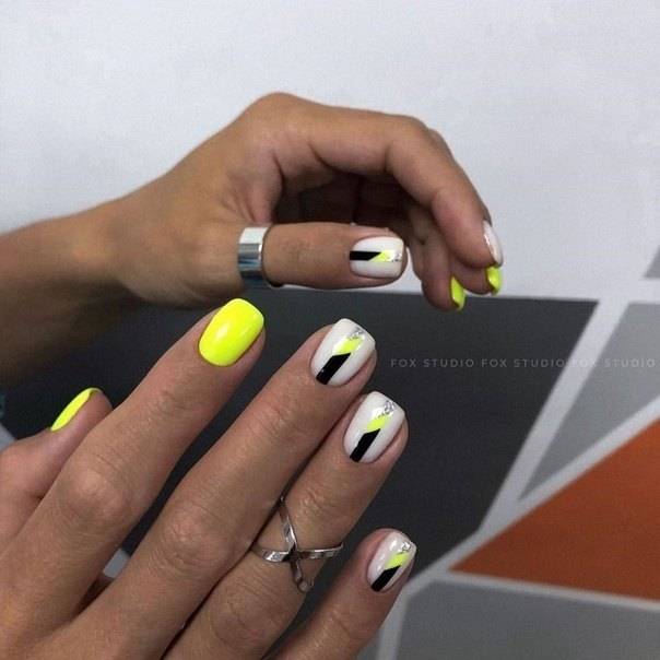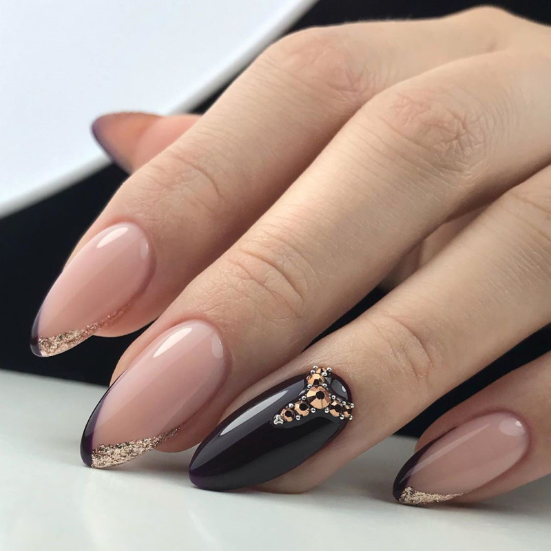 Осень – непредсказуемая пора. Мода диктует свои требования к оформлению ногтей: короткая или средняя длина, правильная форма свободного края. Вы практикуете наращивание? Делайте ногти более естественными, избегая чрезмерно длинных кончиков. Можно добавить в дизайн немного золотых блесток или украсить один ноготь аккуратными стразами – это сделает ваш нейл-арт ярче.