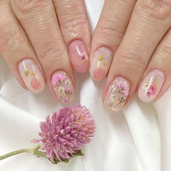 Круглая форма ногтей идеальна для маникюра с цветами хризантема. Именно данный цветок цветет в осенний период и радует нас своими яркими и броскими красками. Благодаря ему вы сможете с теплотой вспоминать солнечное лето, ведь его небольшой кусочек будет у вас на ногтях.