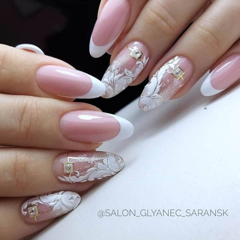 Само кружево подбирается в любом цвете, с добавлением разного декора. По итогу это дает возможность подбирать маникюр на праздники, выступления и другие мероприятия.