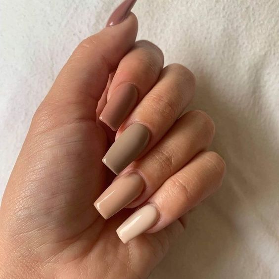Универсальные оттенки коричневого как ни один другой цвет уместны для завершения осенних аутфитов. Коричневый добавляет ногтям глубины, особенно с различными вариациями фактур – глянцевой или матовой.