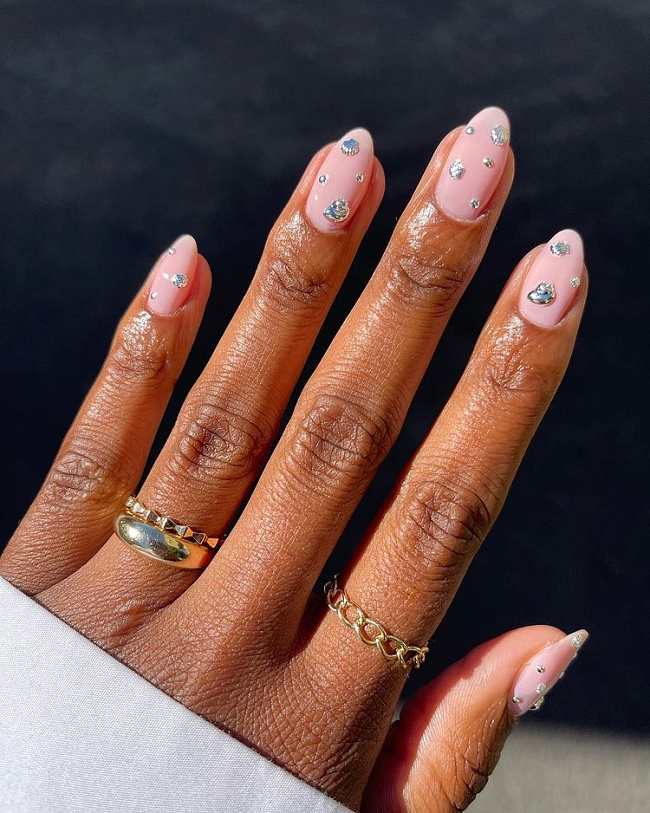 Гайд по осенним трендам в маникюре. Фото: @olo.naileditЕще один вариант, пришедший к нам из летних трендов, но с небольшим дополнением, — нюдовый маникюр, в который можно добавить элементы, выполненные металлическими наклейками или лаком в оттенке серебряный металлик. Такой маникюр будет каким угодно: стильным, дерзким, но только не скучным. Кстати, это касается даже однотонного покрытия.