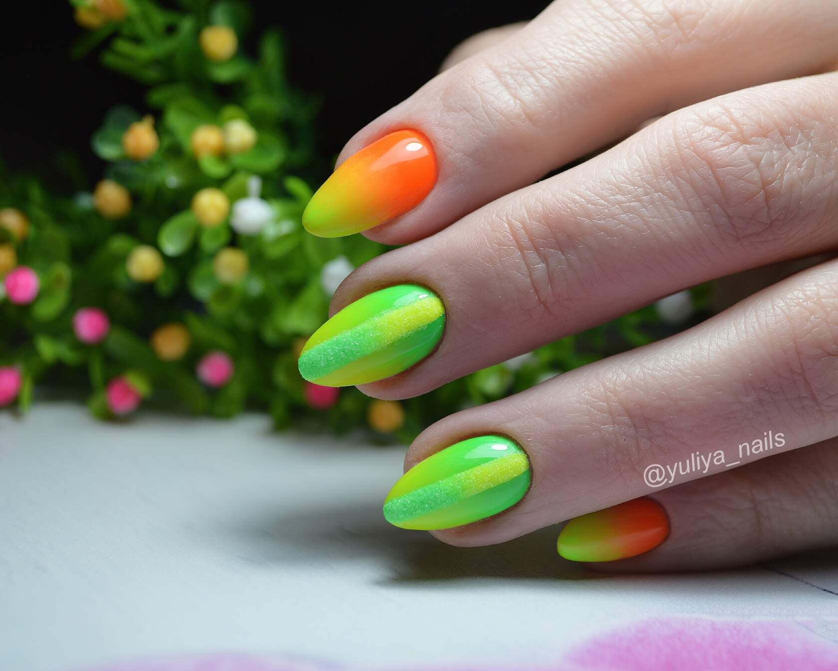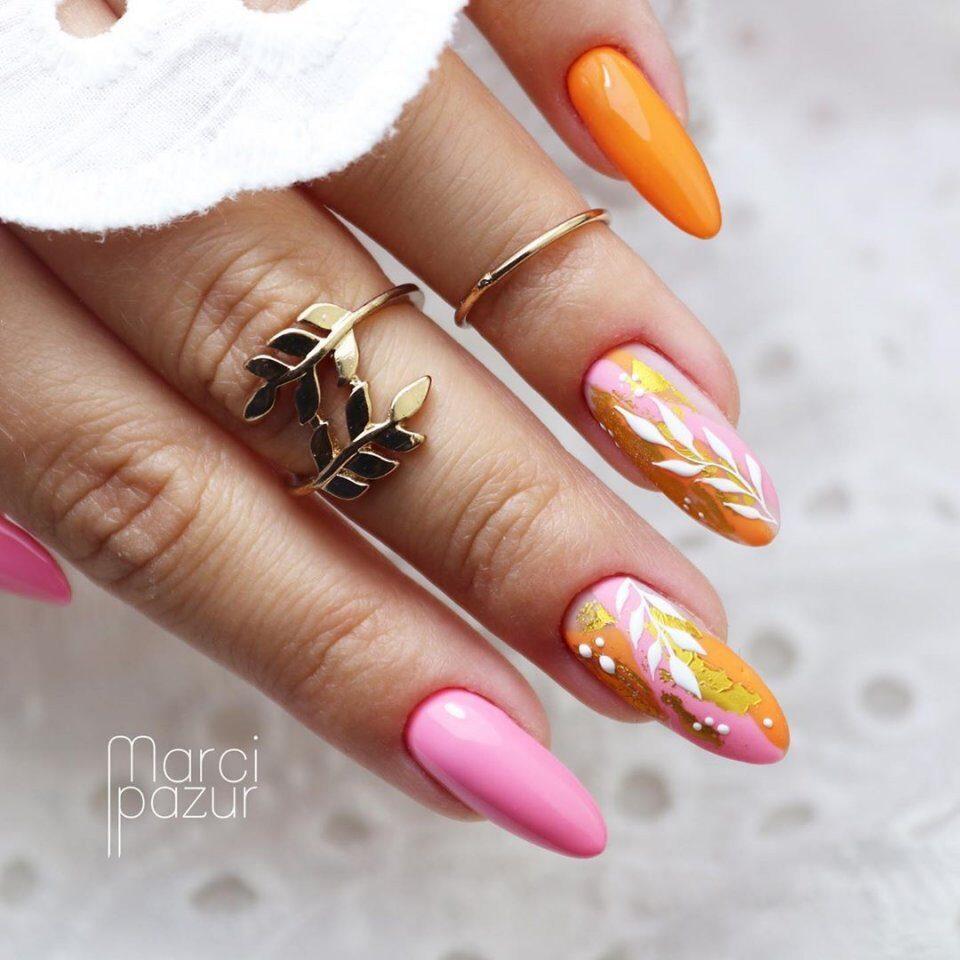 Если же цвета похожи друг на друга, то лучше, если они будут яркими. Идеально подойдут для такого маникюра насыщенный розовый или коралловый.