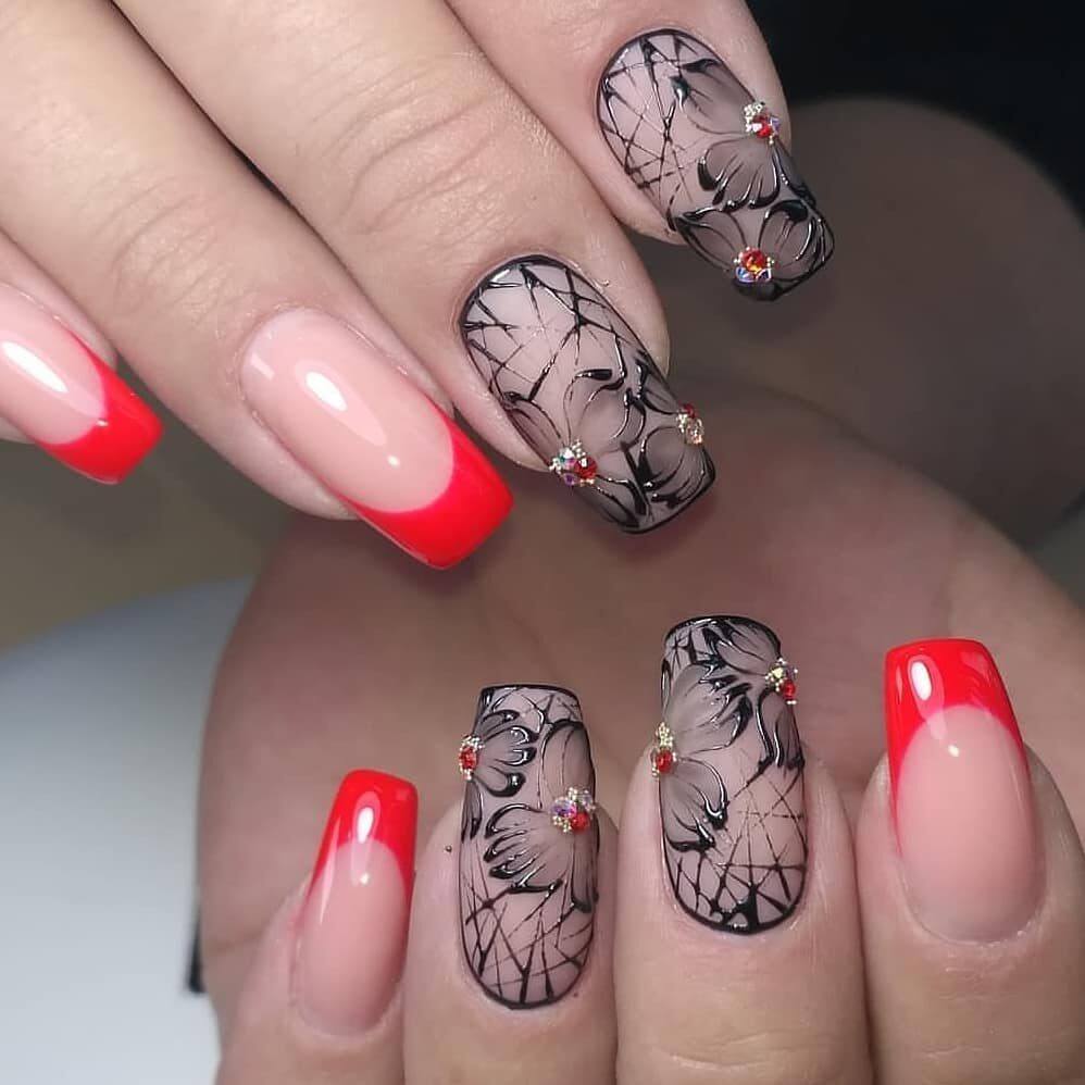 Само кружево подбирается в любом цвете, с добавлением разного декора. По итогу это дает возможность подбирать маникюр на праздники, выступления и другие мероприятия.