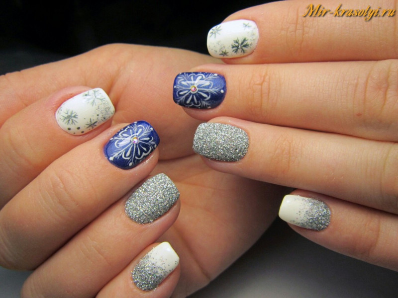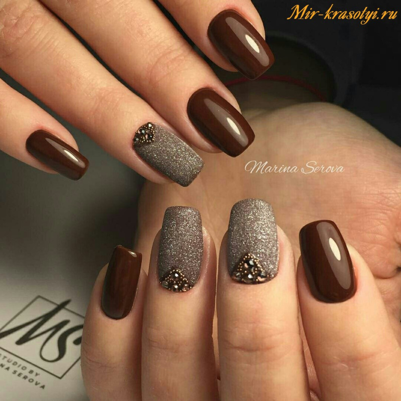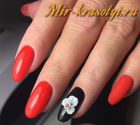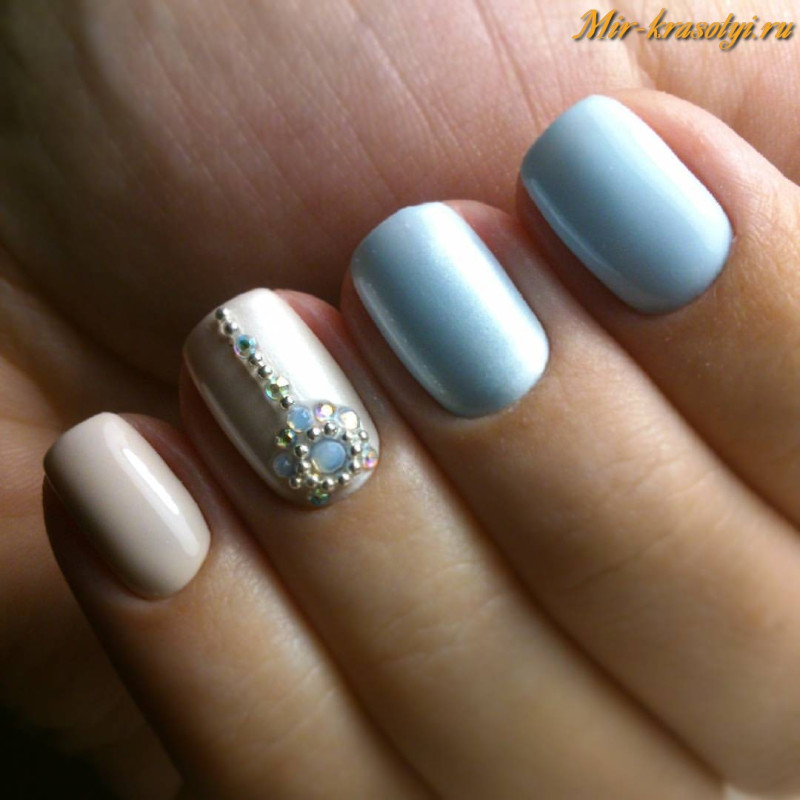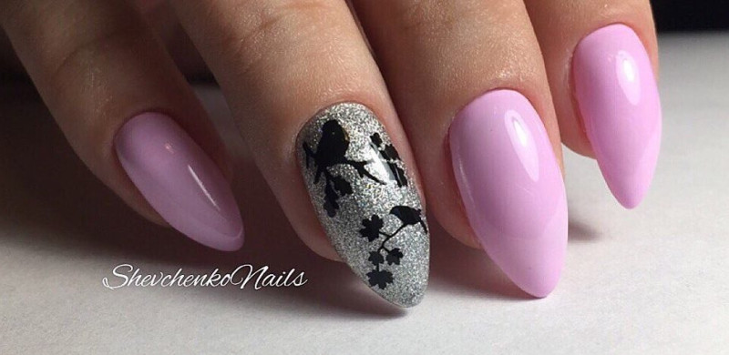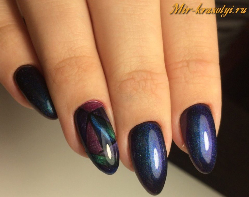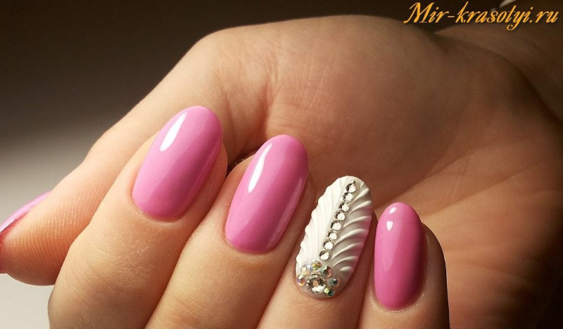 С акцентом. Наиболее распространенный вариант. Особенность такого маникюра заключается в том, что основной акцент здесь делается на одном-двух ноготках. Например, если вы хотите привлечь любовь, для этого стоит выделить безымянный палец правой или средний левой руки. Если же в планах стоит примирение с близкими, украшать следует правый мизинец. Подойдет в данном случае абсолютно любой декор. Это могут быть стразы, небольшие рисунки, блестящее или матовое покрытие.