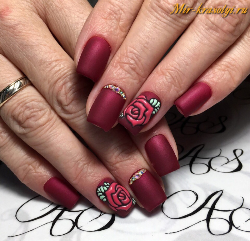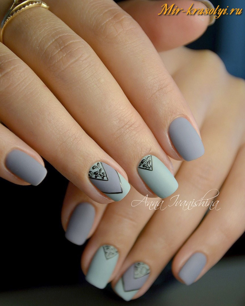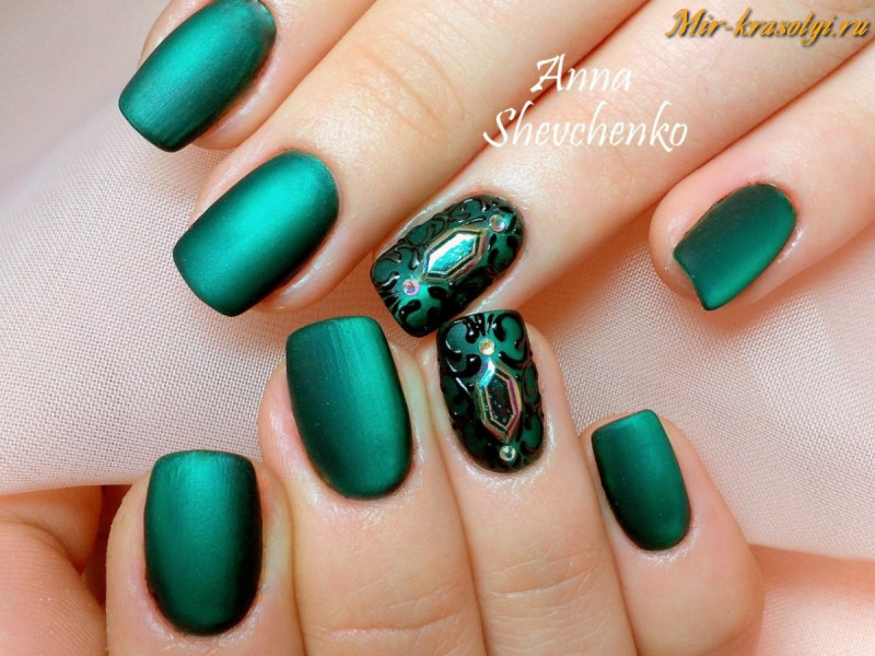 Бархатный. Обрести спокойствие и положительный настрой вам поможет бархатный нейл-арт. Для его создания вам может понадобиться флоковая присыпка или матовый топ. В зависимости от того, какой эффект вы хотите получить, выделять таким образом можно, как один палец, так и всю руку.