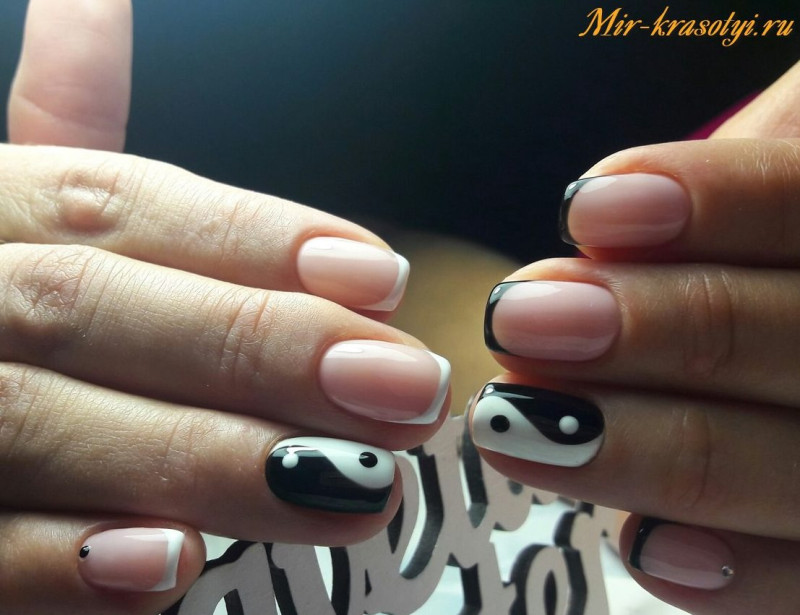 Френч. Оформив маникюр в классической черно-белой гамме, вы получите дизайн, символизирующий женское и мужское начало. Такой нейл-арт идеально подойдет для тех представительниц прекрасного пола, которые хотят наладить взаимоотношения с мужчинами.
