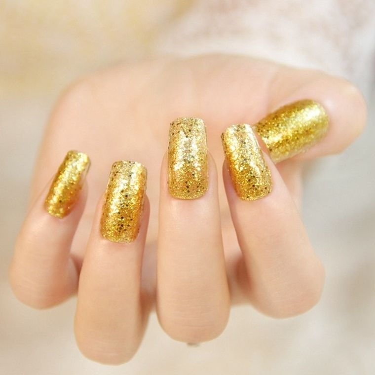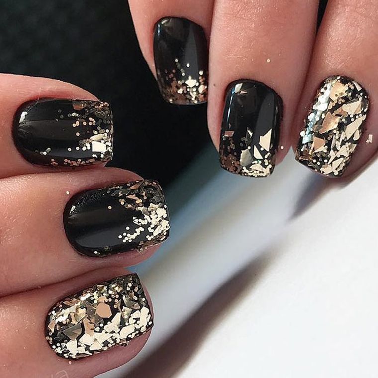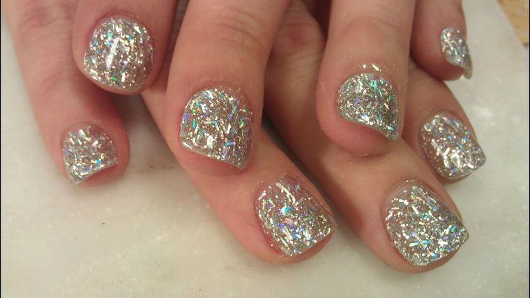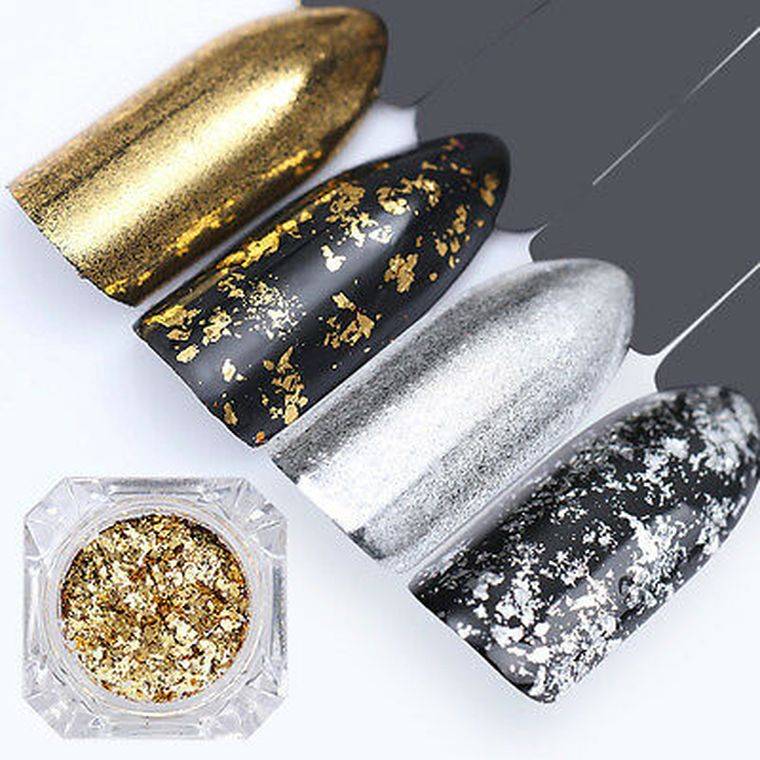 Самыми универсальными цветами глиттера являются золотой и серебряный. Они отлично смотрятся с любым цветом лака.
