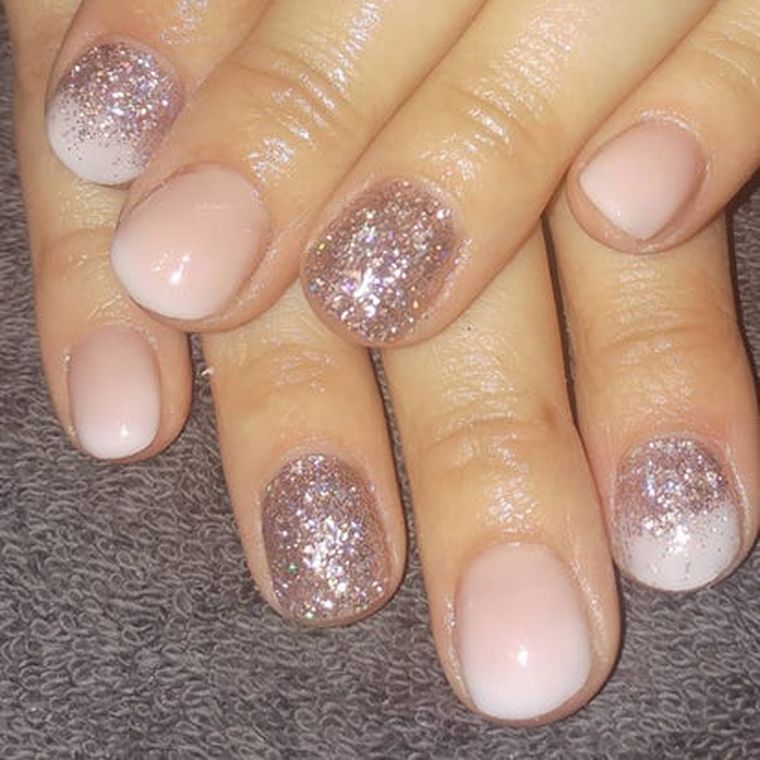 Еще один популярный прием в дизайне ногтей — омбре или градиент. Нанесите разное количество блесток на верхнюю и нижнюю часть ногтя и посмотрите, как изменится маникюр и приобретет праздничный вид.