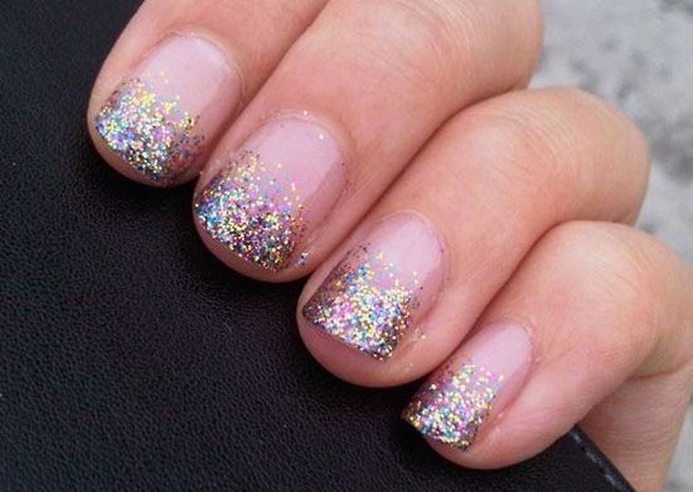 Использовать глиттер можно при создании яркого френча или омбре. Подобный нейл-арт придаст задорности образу.