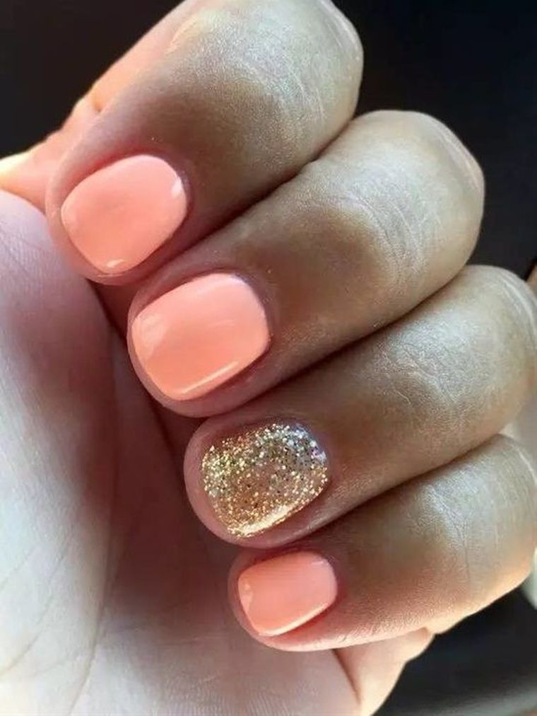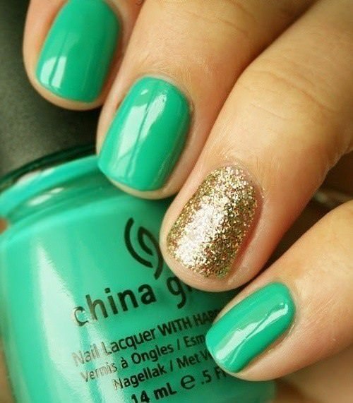 Блестки можно использовать для создания яркого акцента на одном или двух ногтях, а остальные ногти просто накрасить одним цветом. Выделение безымянного пальца — это вечная тенденция. Сочетайте его с популярным декором, и вы станете обладательницей современного и привлекательного дизайна ногтей!