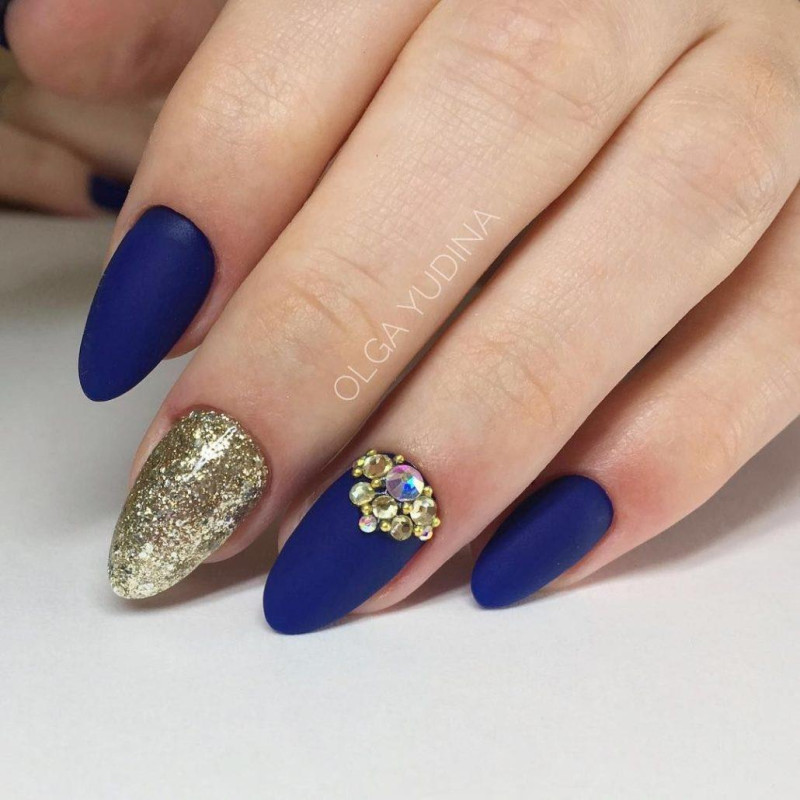 Использование блесток — не повод отказываться от камней. Они смогут стать нужным акцентом. Только не перебарщивайте с яркостью. Такой дизайн уместен исключительно в вечернее время и торжественной обстановке.