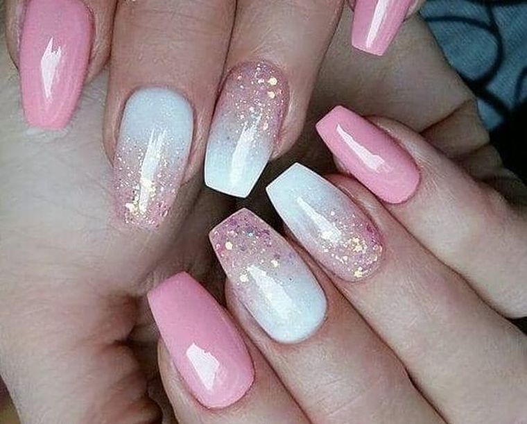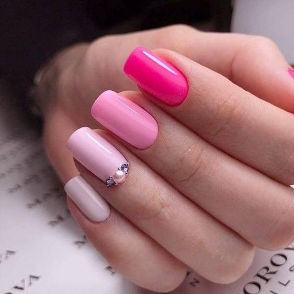 Комбинируйте светло-розовый с алым. На ногти светлого оттенка можно добавить разноцветные пайетки. К тому же такой маникюр вы запросто сможете сделать самостоятельно.