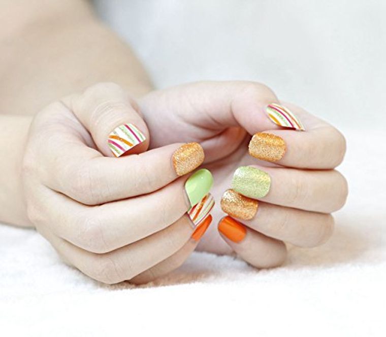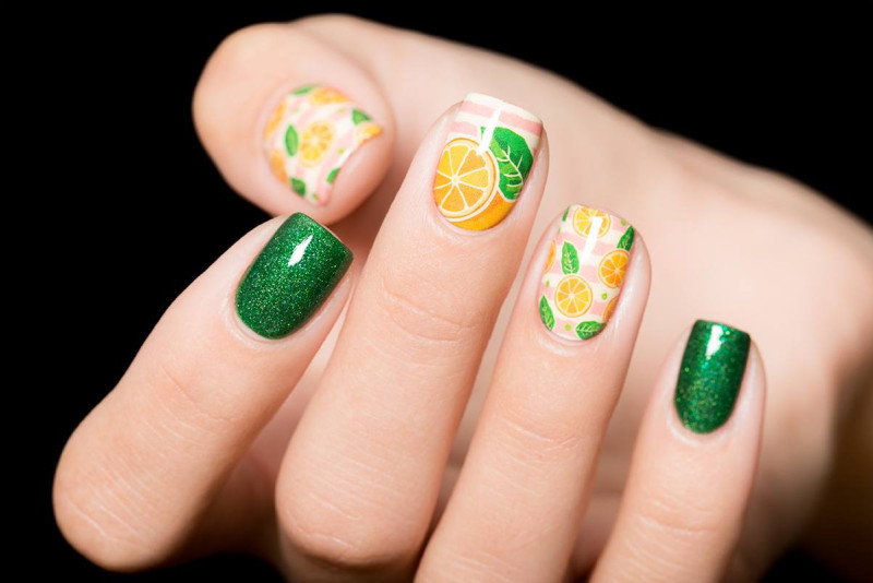 В осенне-зимний период преимущество отдаётся более тёмным и глубоким оттенкам зелёного, которые прекрасно сочетаются с оранжевыми, жёлтыми и красными осенними листьями, еловыми ветками, снежинками и морозными узорами с добавлением блестящих акцентов золота или серебра. Весной и летом популярностью пользуются более светлые, яркие или пастельные лаки, идеально передающие игривое и лёгкое настроение дизайна с фруктами, распускающимися бутонами, всевозможными травинками и порхающими насекомыми.