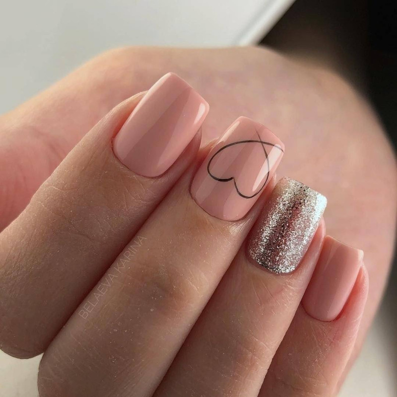 Просто нарисуйте на указательном ногте маленькое серебряное сердечко, что уже сделает ваш маникюр невероятно милым.