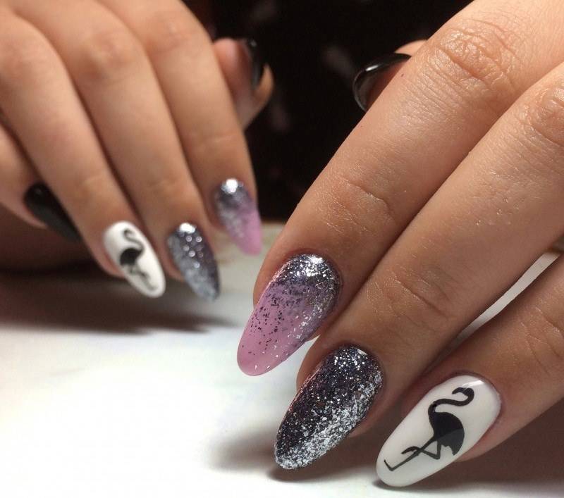 Если говорить об оттенках блесток, то их большое количество, а цветовое разнообразие лаков тем более с трудом можно пересчитать. И именно поэтому вариантов сочетаний блестящего нейл-Арта с разными цветами лака много.