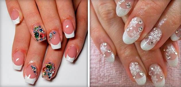 Многие модницы хотят сделать не только френч с блестящим кончиком ногтя, но и дополнить его другим видом дизайна. Стоит выбирать дополнительный декор для французского маникюра аккуратно. Не стоит перегружать повседневный маникюр деталями.
