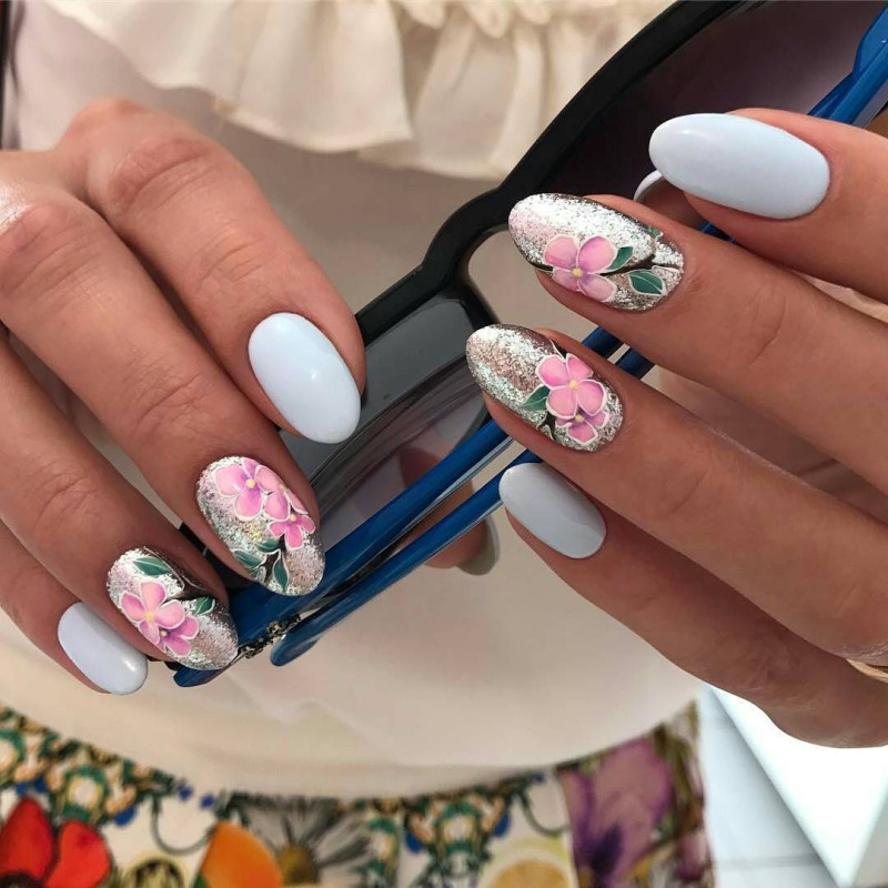 В таком случае можно использовать дизайн с блестящим френчем или нарисовать нежные цветы.