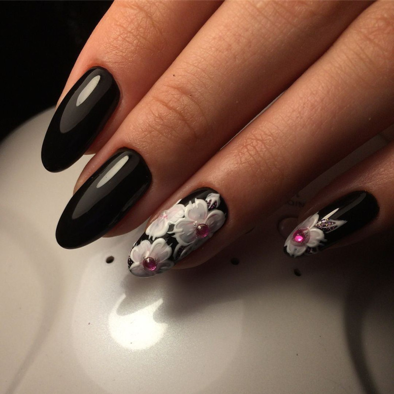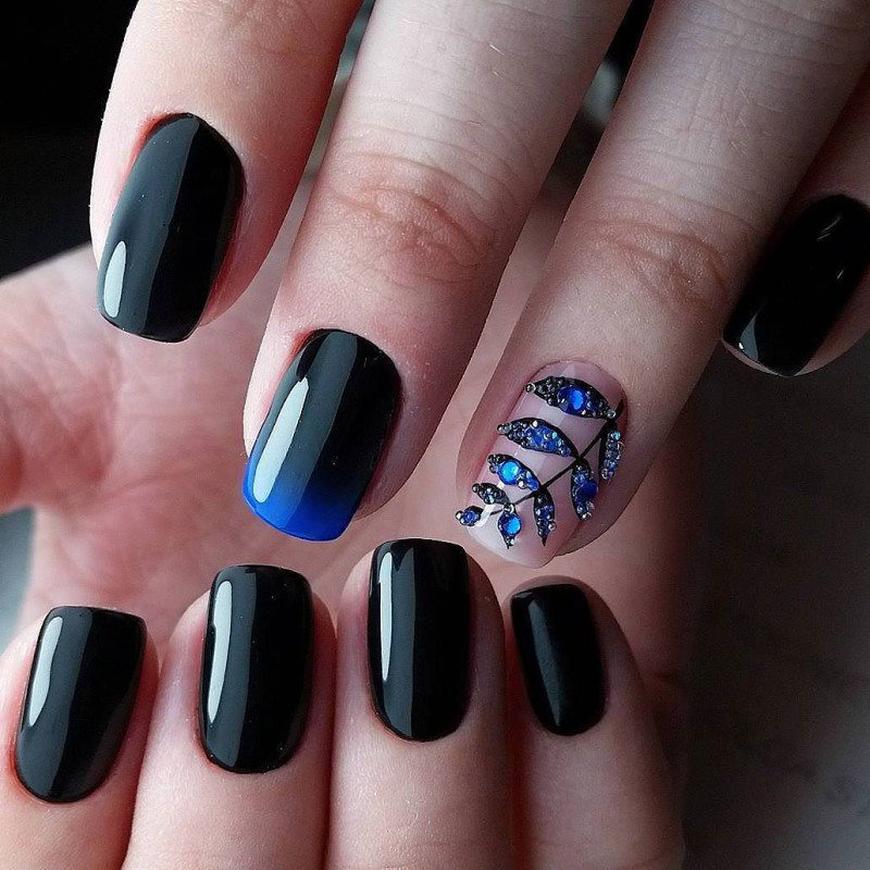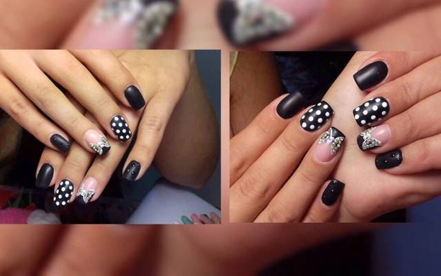 - Представленная подборка фото демонстрирует, что черный лак- прекрасная база для экспериментов с различными декором.