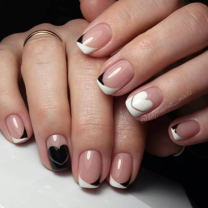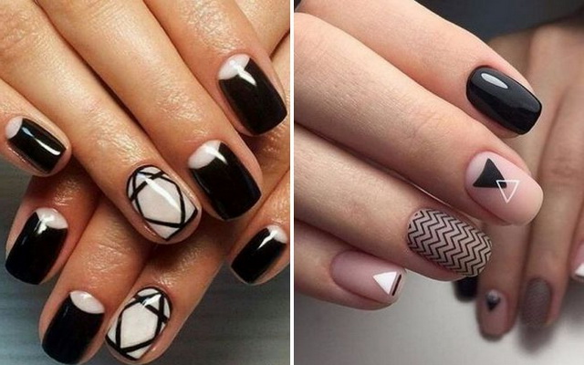 Контрастные чёрно-белые узоры любых мотивов всегда выигрышно смотрятся. Французский и лунный маникюр всегда будут в тренде, поскольку являются классикой. Данные виды дизайна лучше всего подойдут для коротких ноготков.