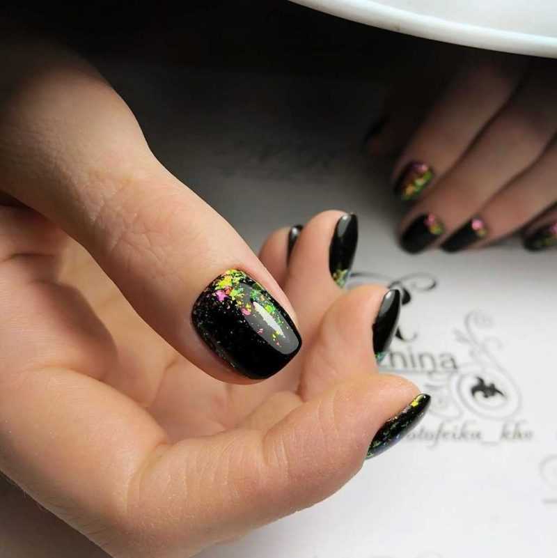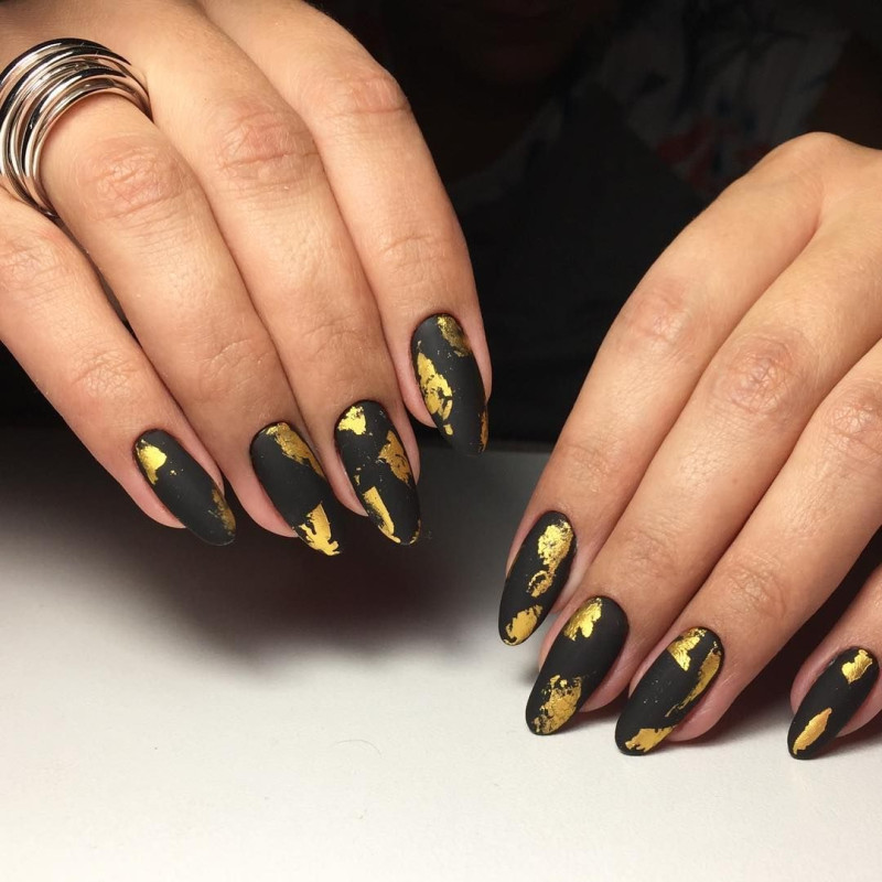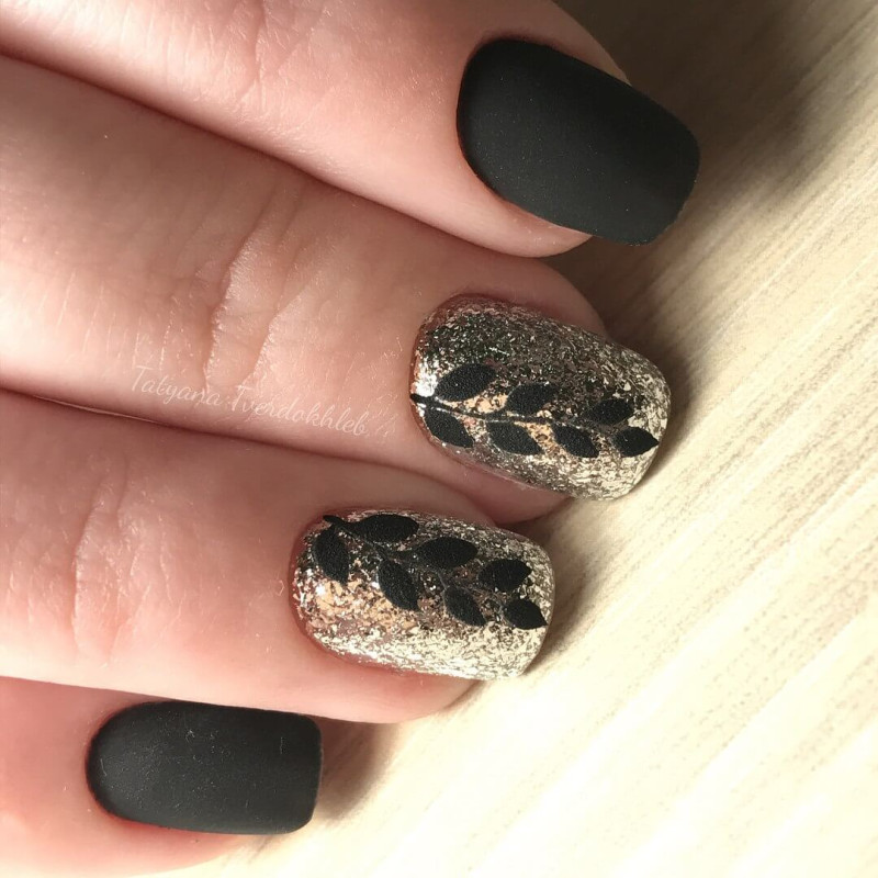 Сочетание золота или серебра с черным матовым топом создает стильный и элегантный маникюр. Вы можете использовать блестки или фольгу, чтобы добавить еще больше блеска и яркости.