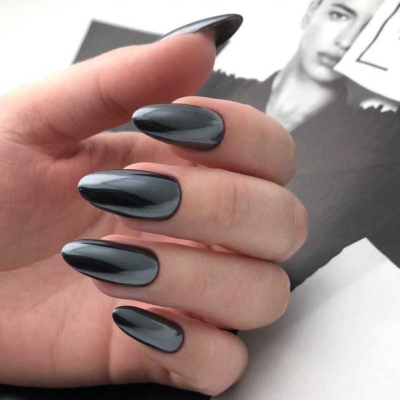 Перед нанесением гель-лака чёрного цвета стоит определиться с формой ногтей. Советуем придать ноготкам овальную или квадратную форму.