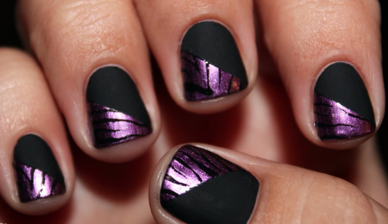 Маникюр черный с фиолетовым