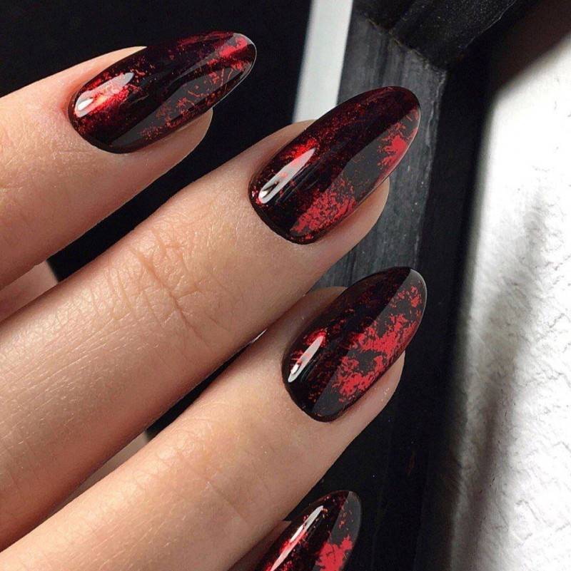Сочетание красного и черного цветов – это беспроигрышный вариант для создания стильного и сексуального маникюра. Черный матовый лак будет контрастировать с ярким красным.