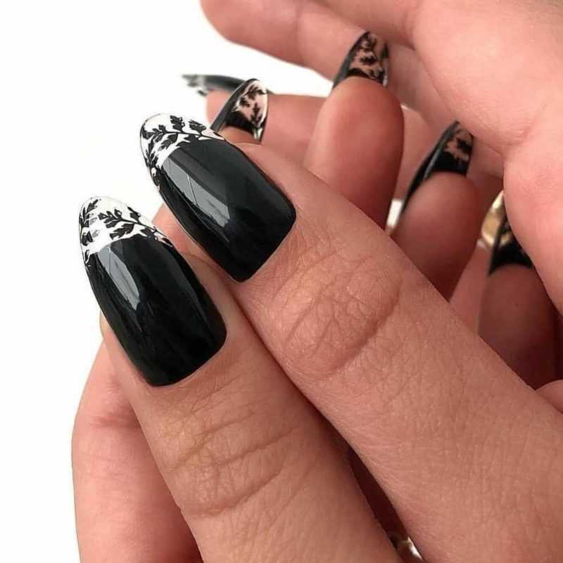И другие варианты черного маникюра можно использовать в новом году, желая угодить модным тенденциям: