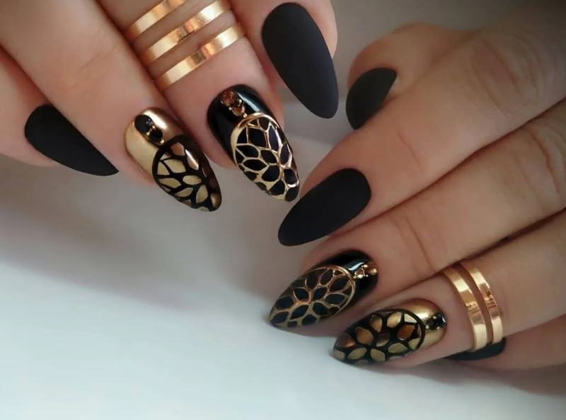 Потрясающий маникюр с сочетанием чёрного и золотого цветов