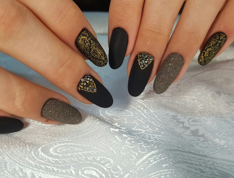 Интересно! Черный с золотом – модный маникюр 2019 года