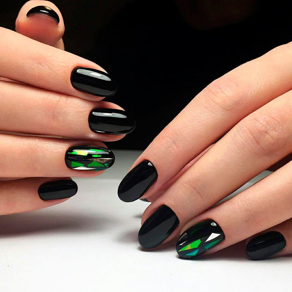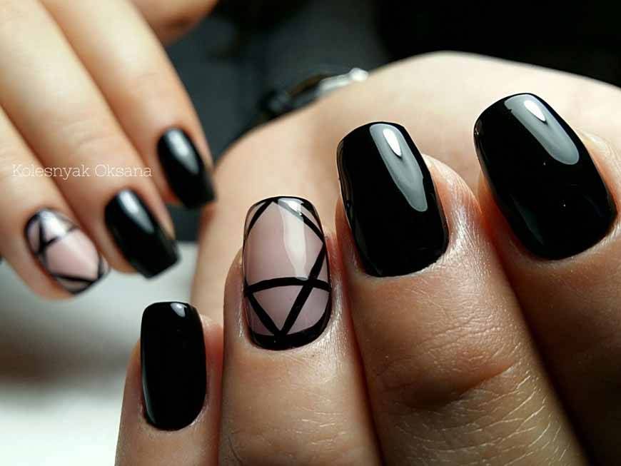 Наиболее красиво смотрится чёрный гель-лак на коротких ногтях. Поэтому если у вас небольшие ноготки, то смело используйте чёрный лак. Стоит отметить, что на длинных ногтях данный цвет лака не считается выигрышным. Поэтому мы так редко можем увидеть у девушек длинные чёрные ногти. Такой маникюр обычно делают девушки-неформалы или участницы концертов и маскарадов. Короткие ногти и ноготки средней длины наиболее подходят для чёрного маникюра.