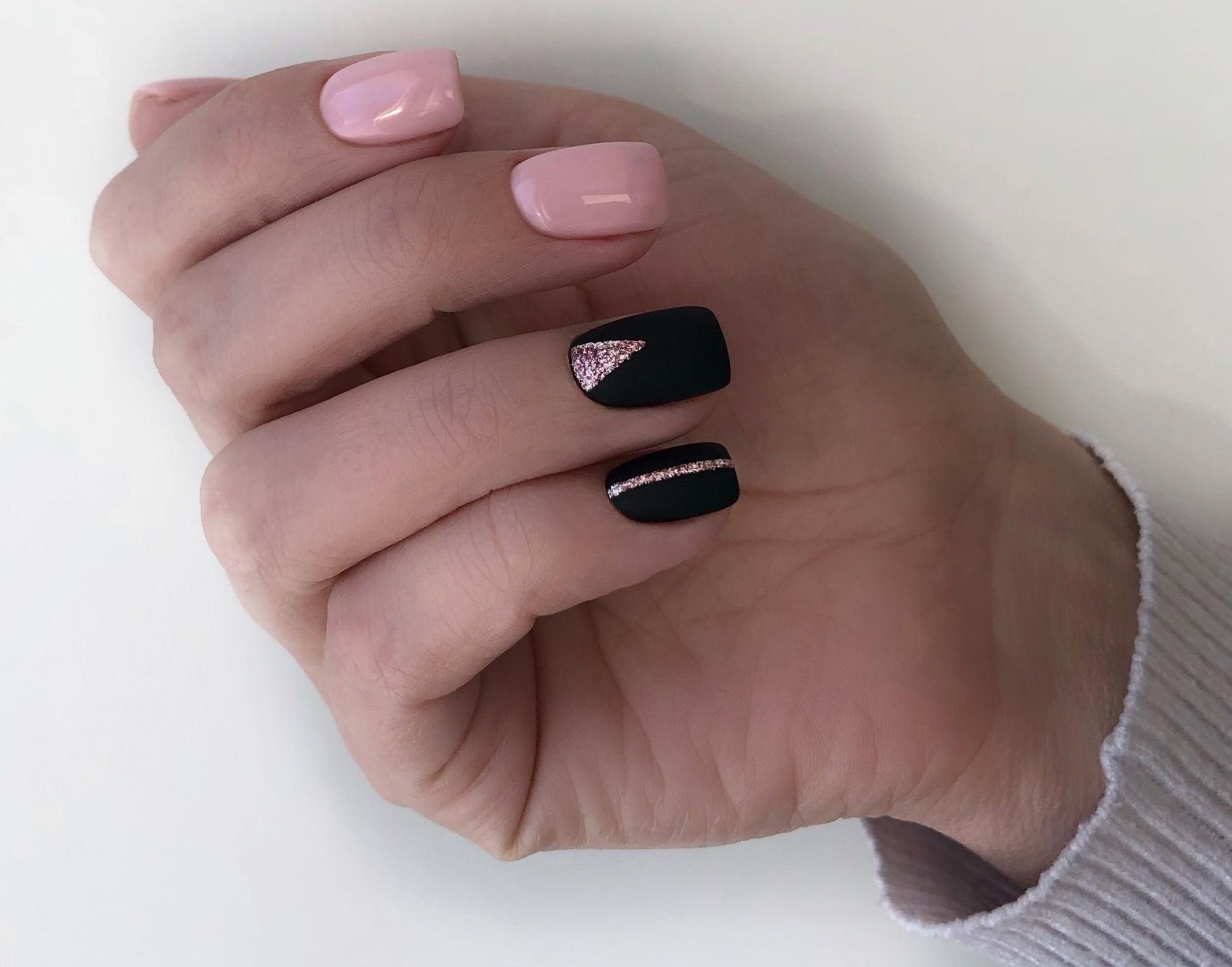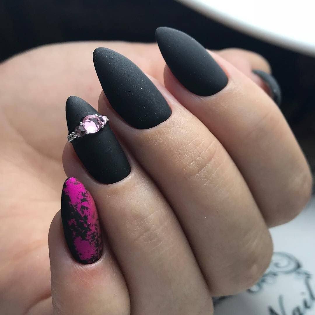 Розовый цвет добавляет женственности и нежности к черному матовому маникюру. Вы можете выбрать розовый оттенок в зависимости от вашего настроения и стиля.