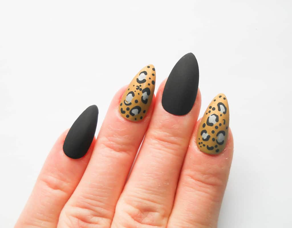 Дайте яркому маникюру с использованием черного лака высохнуть, а потом добавьте прозрачное стойкое покрытие.