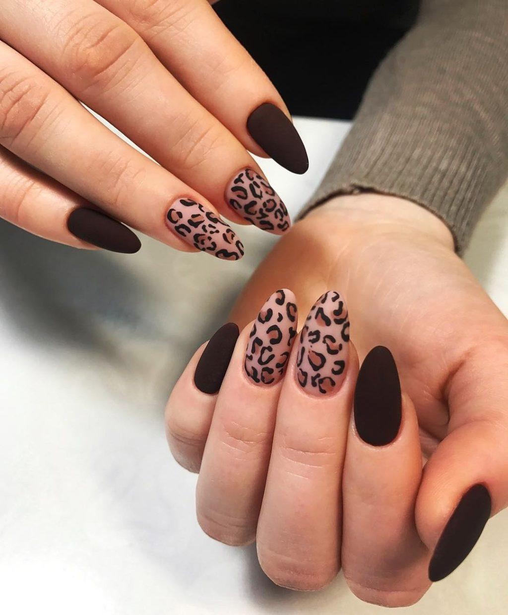 Среди модных оттенков следует выделить шоколадный. Он станет отличной основой для нанесения всевозможного декора и принтов, выгодно дополнит осенний и зимний луки.