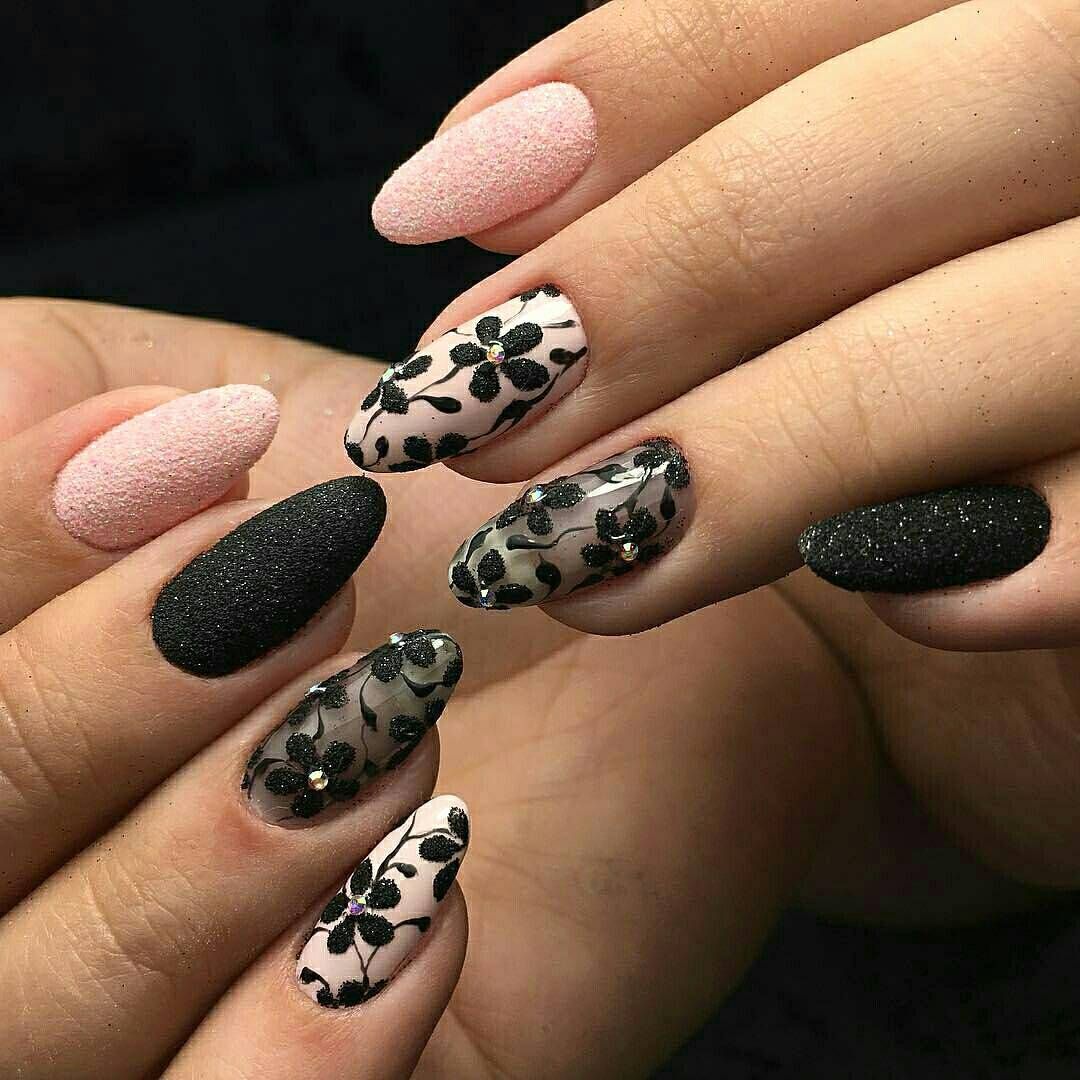 Чёрный маникюр с матовым эффектом придаст ноготкам изящности, утончённости. Чтобы такой маникюр смотрелся ещё красивее, его обычно дополняют глянцевым лаком чёрного цвета. Можно некоторые ноготки покрыть глянцем, а некоторые матовым лаком – выйдет очень оригинальный дизайн.