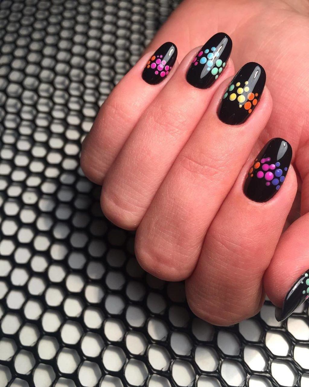 - Повторите прием, меняя размер инструмента для узора в горошек, пока ваши ногти не будут покрыты рядами точек.