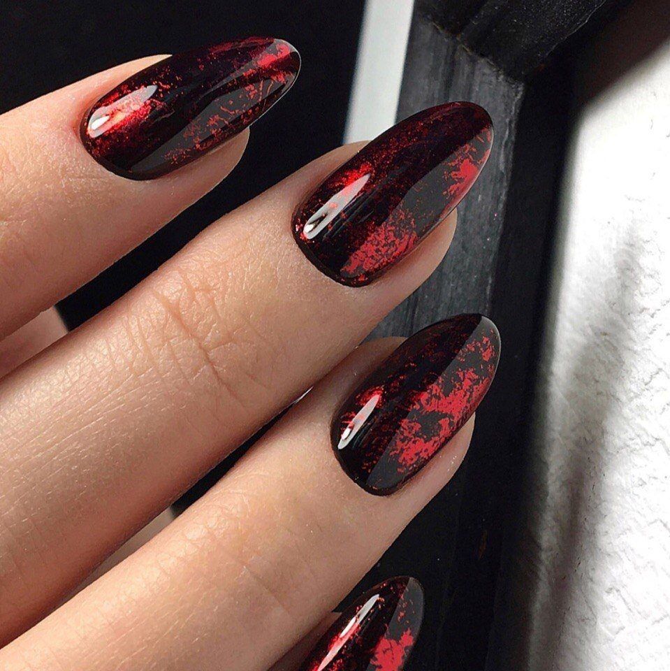 Красно-черные матовые ногти