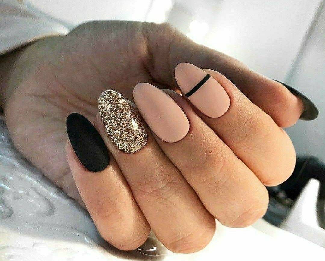 Сочетание золота или серебра с черным матовым топом создает стильный и элегантный маникюр. Вы можете использовать блестки или фольгу, чтобы добавить еще больше блеска и яркости.