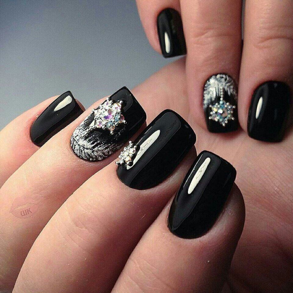 - Представленная подборка фото демонстрирует, что черный лак- прекрасная база для экспериментов с различными декором.