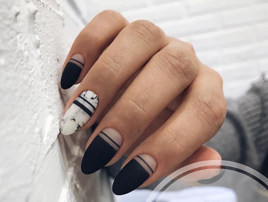 Черно-белый матовый маникюр – это классический и стильный выбор. Дополните его, сочетая черный и белый цвета в разных пропорциях на разных ногтях.