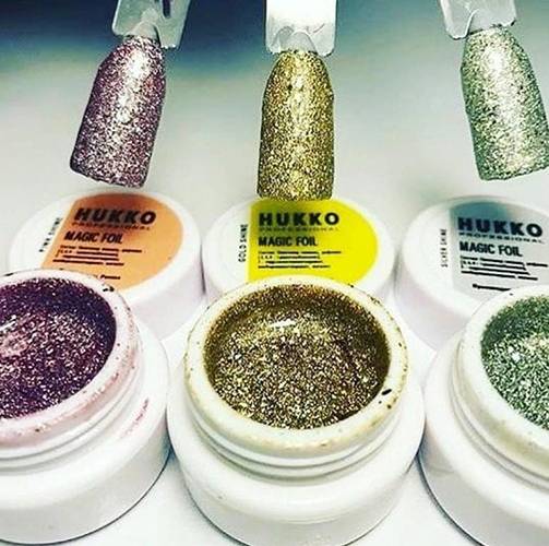 Жидкая фольга появилась на рынке нейл-арта относительно недавно. Такая фольга представляет собой гель, в который вмешаны блестящие компоненты.
