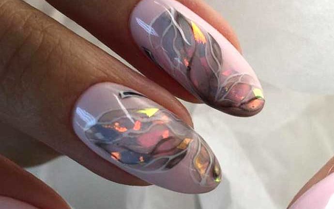 Жатая фольга часто используется мастерами маникюра для создания аквариумных дизайнов.